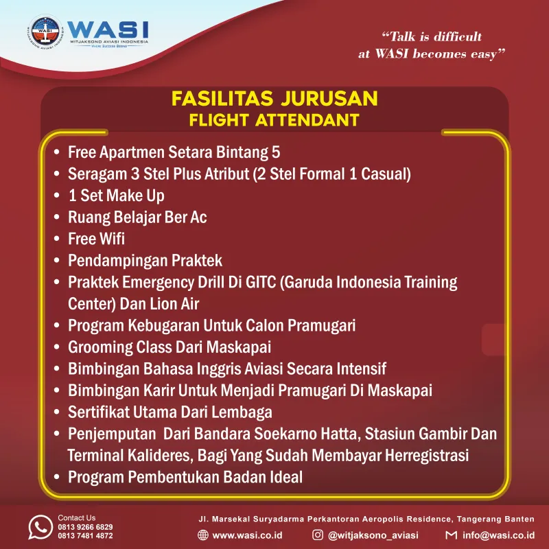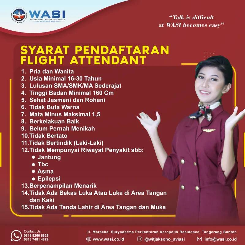 Silahkan tanya kami apabila anda masih memiliki pertanyaan mengenai program Flight Attendant atau WASI ( Witjaksono Aviasi Indonesia )