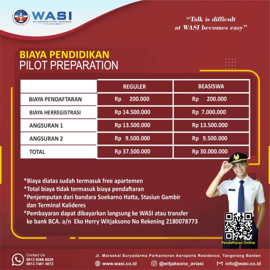 Program BEASISWA WASI ( WITJAKSONO AVIASI INDONESIA ) dan juga Instruktur-instruktur handal beserta alat simulator canggih akan membantu peserta didik WASI dalam meraih mimpi!